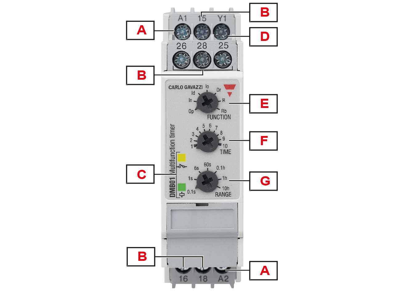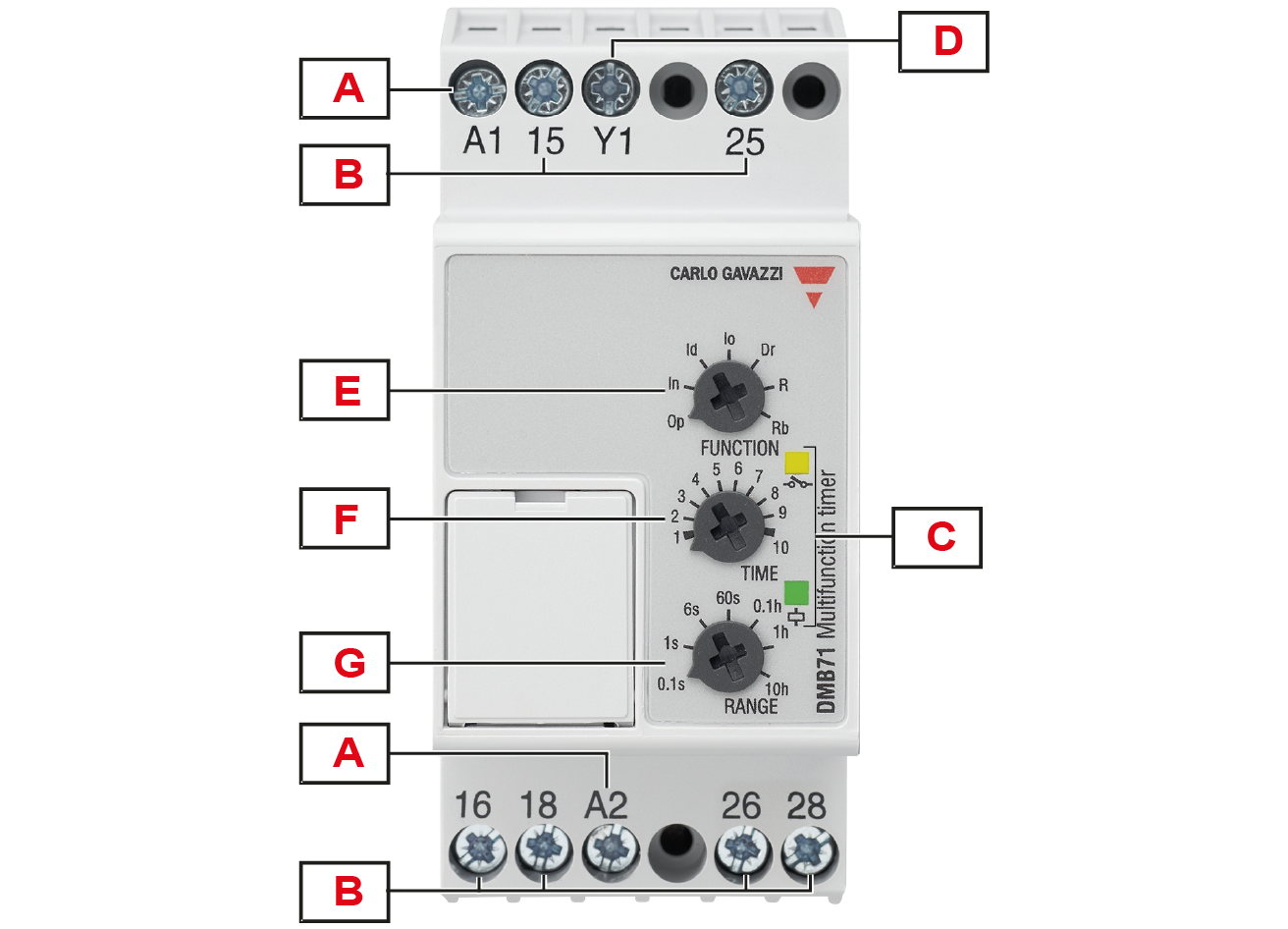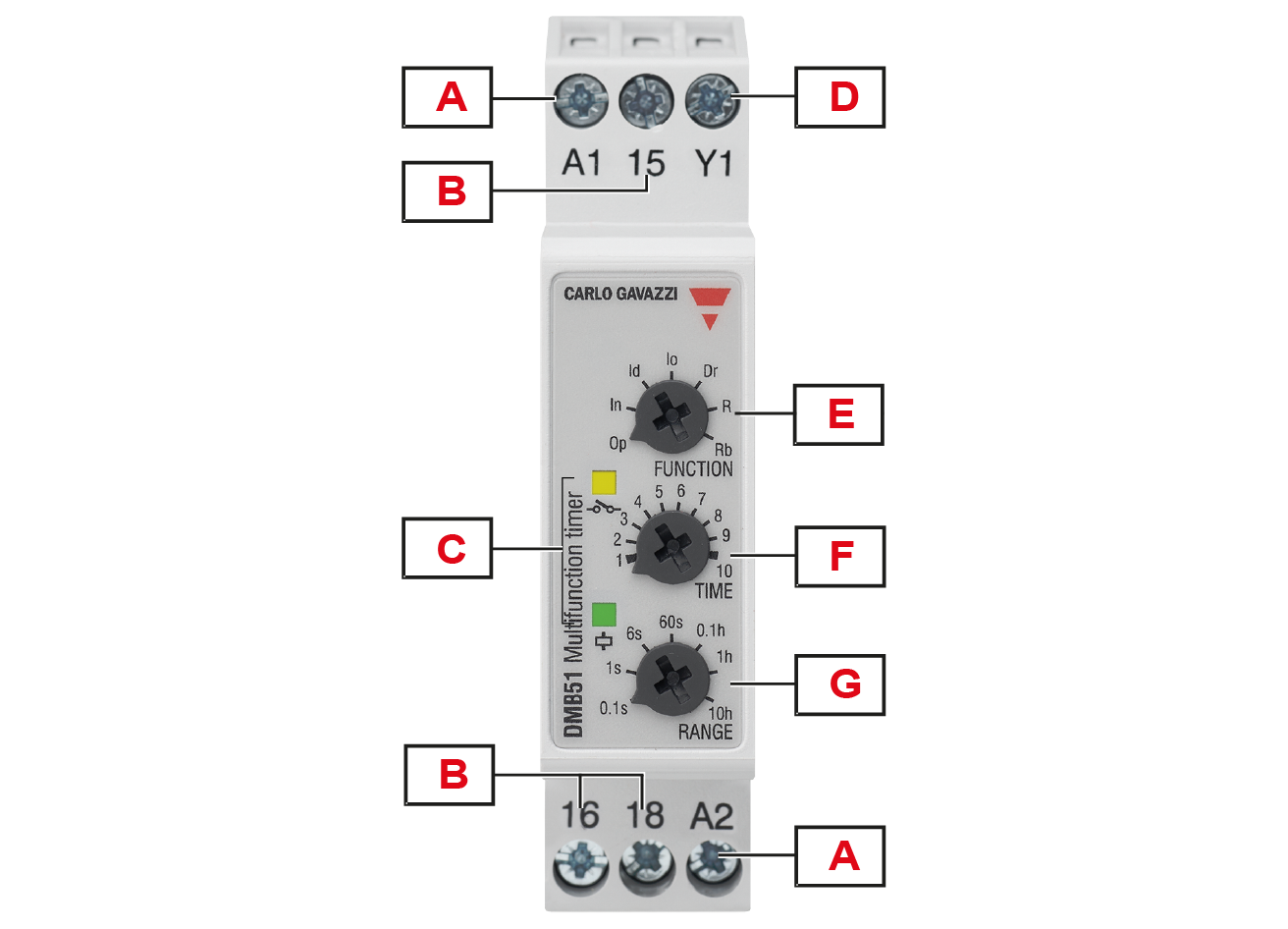 Op - delay on operate In - interval Io - interval on trigger open Id - double interval Dr - delay on release R - symmetrical recycler (ON first) Rb - symmetrical recycler (OFF first) |