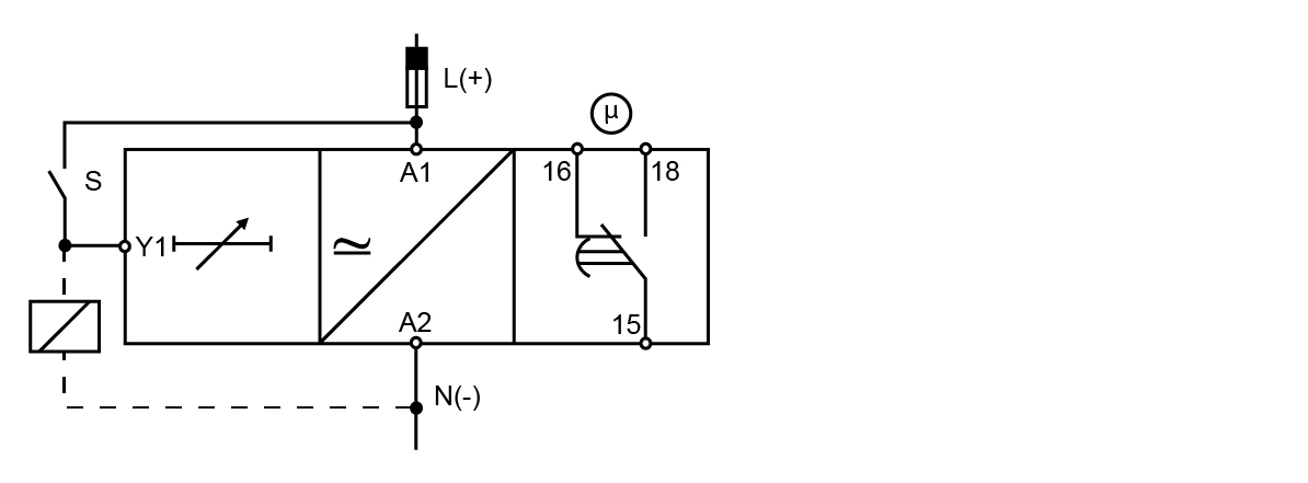 The relay releases at the end of this period or when the power supply is disconnected.